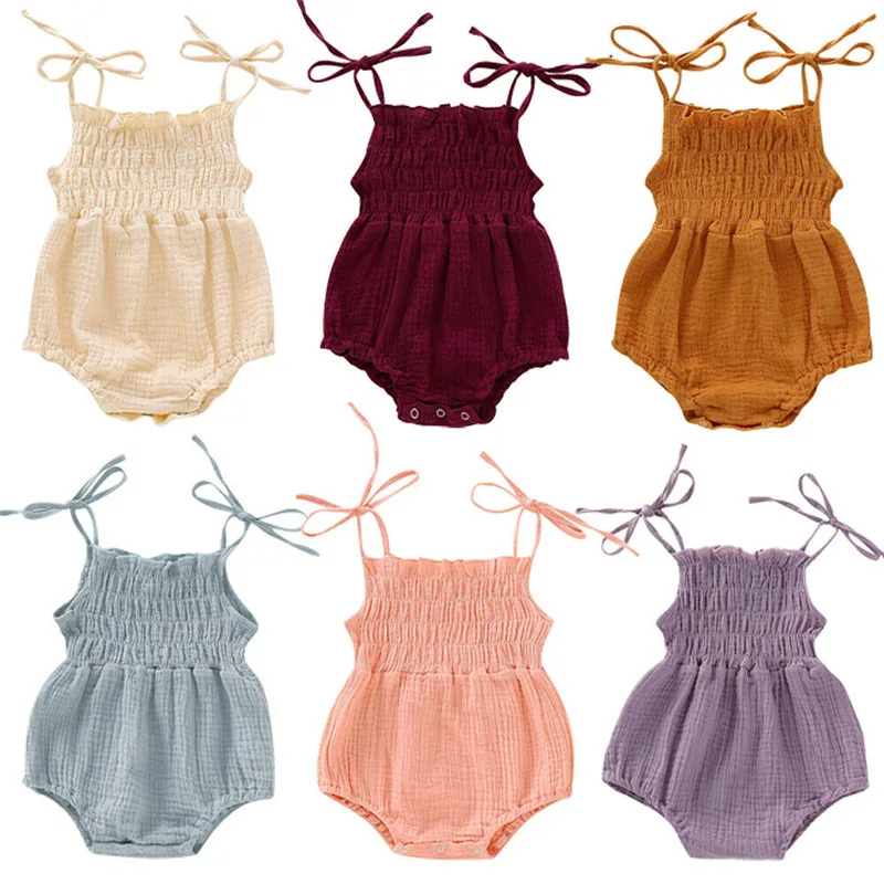 أرغب في شراءمعلومات اضافية 2019 الوليد الطفل الفتيات القطن أكمام رومبير بذلة لطيف Strappy و Playsuit الطفل ملابس الصيف الزي 0 إلى 18 M