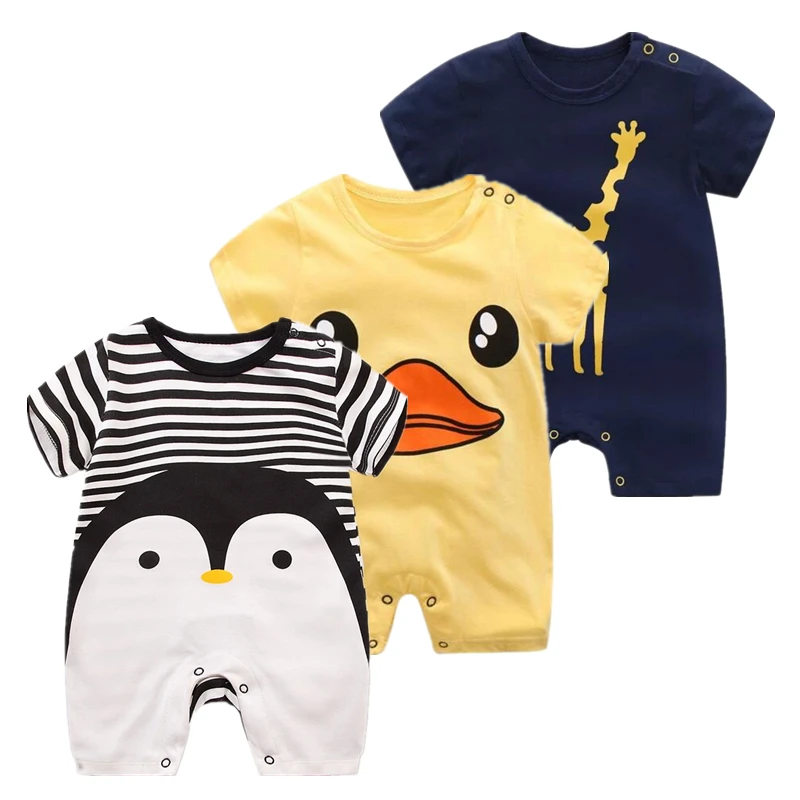استعارات ل الصيف بيع طفلة الملابس البطريق السروال القصير الوليد الصبي قصيرة الأكمام السروال القصير 100% القطن الكرتون جمبسوت للأطفال فتاة الملابس
