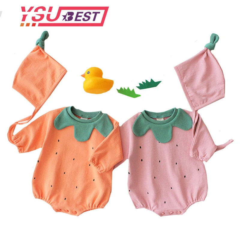المنتجات ذات الصلة ل Rompers و 2019 الربيع رومبير الرضع مولود جديد الفتيان والفتيات طفل لطيف اليقطين شكل القطن طويل الأكمام + قبعة حللا طفلة الملابس