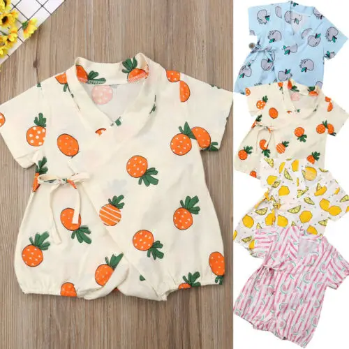 أرغب في شراءمعلومات اضافية 2019 لطيف طفلة الصيف الملابس القطن لينة البطيخ الليمون رومبير بذلة تتسابق ل الوليد الرضع ملابس الأطفال