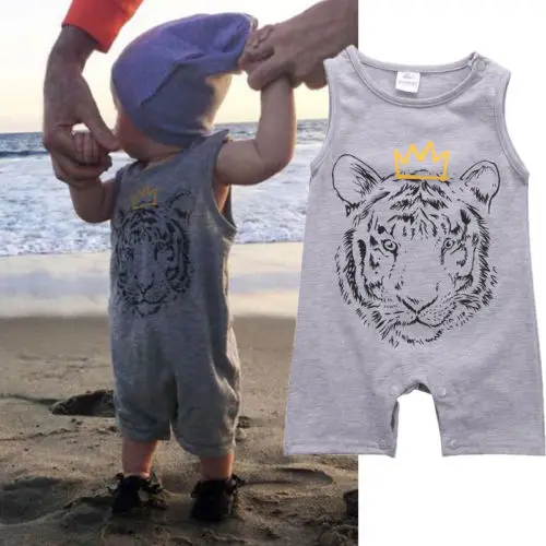 شراءمعلومات اضافية المولود الجديد طفل الصبي الملابس النمر القطن رومبير بذلة Playsuit تتسابق الحريم الملابس