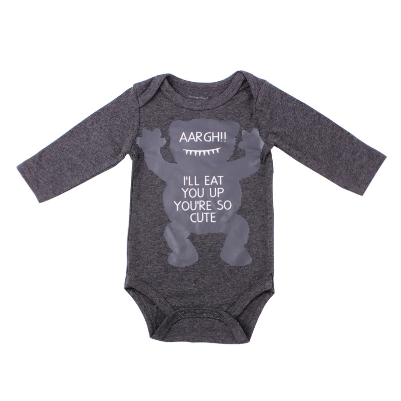استعارات ل القطن رمادي الوليد بيبي بوي ملابس الطفل الصغير الوحش رومبير الكرتون أرخص طويل الأكمام الملابس 0-12 أشهر للأطفال