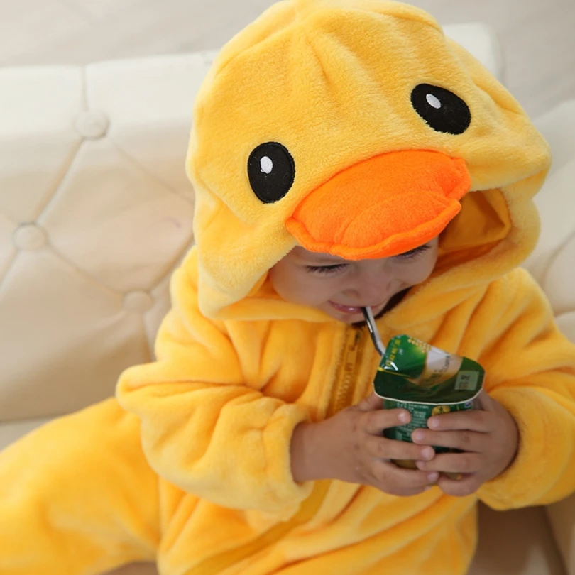 وانت porأرغب في شراء Rompers, en ese momento جديد الحيوان الطفل رومبير الأصفر بطة بيبي الرضع ملابس الطفل الصبي فتاة ملابس لطيف الفانيلا الكرتون مقنعين بذلة زي es posible poner appeal