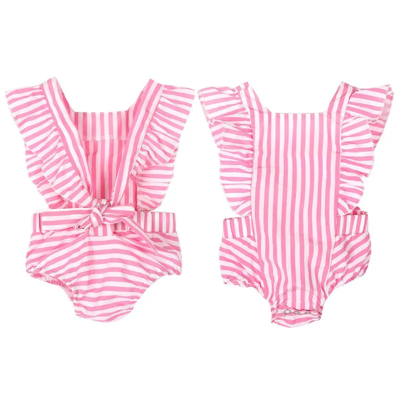 استعارات ل الرضع طفل الاطفال فتاة الملابس رومبير مخطط جمبسوت من القطن Playsuit تتسابق Sunsuit M