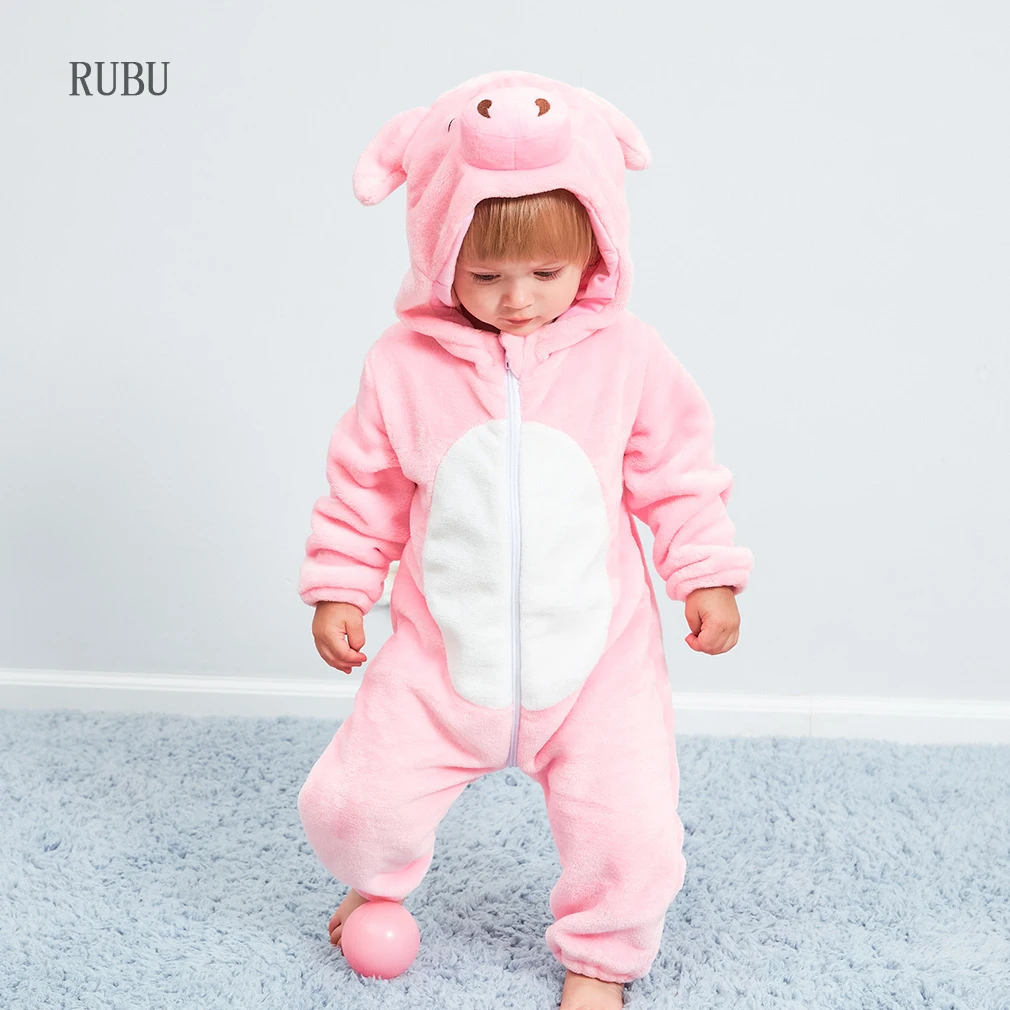 شراءمعلومات اضافية الطفل السروال القصير الوردي خنزير الفتيات الملابس مولود جديد الطفل زي صبي بذلة الدافئة الشتاء بيجاما للحيوانات roupas دي بيبي recem nascido