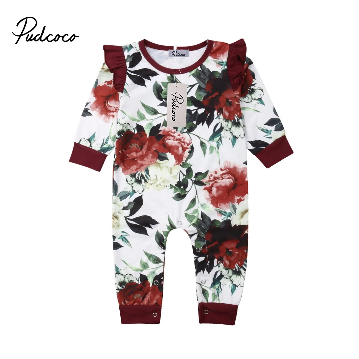 استعارات من 2019 الأزياء الأزهار طفلة طويلة الأكمام زهرة رومبير بذلة الزي ل حديثي الولادة طفلة الأطفال الرضع القماش طفل الملابس