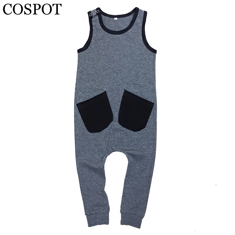شراءمعلومات اضافية طفل الفتيان الفتيات الصيف رومبير طفل القطن خزان بذلة الاطفال عادي رمادي بالمر ستر Playsuits 2019 جديد وصول 28